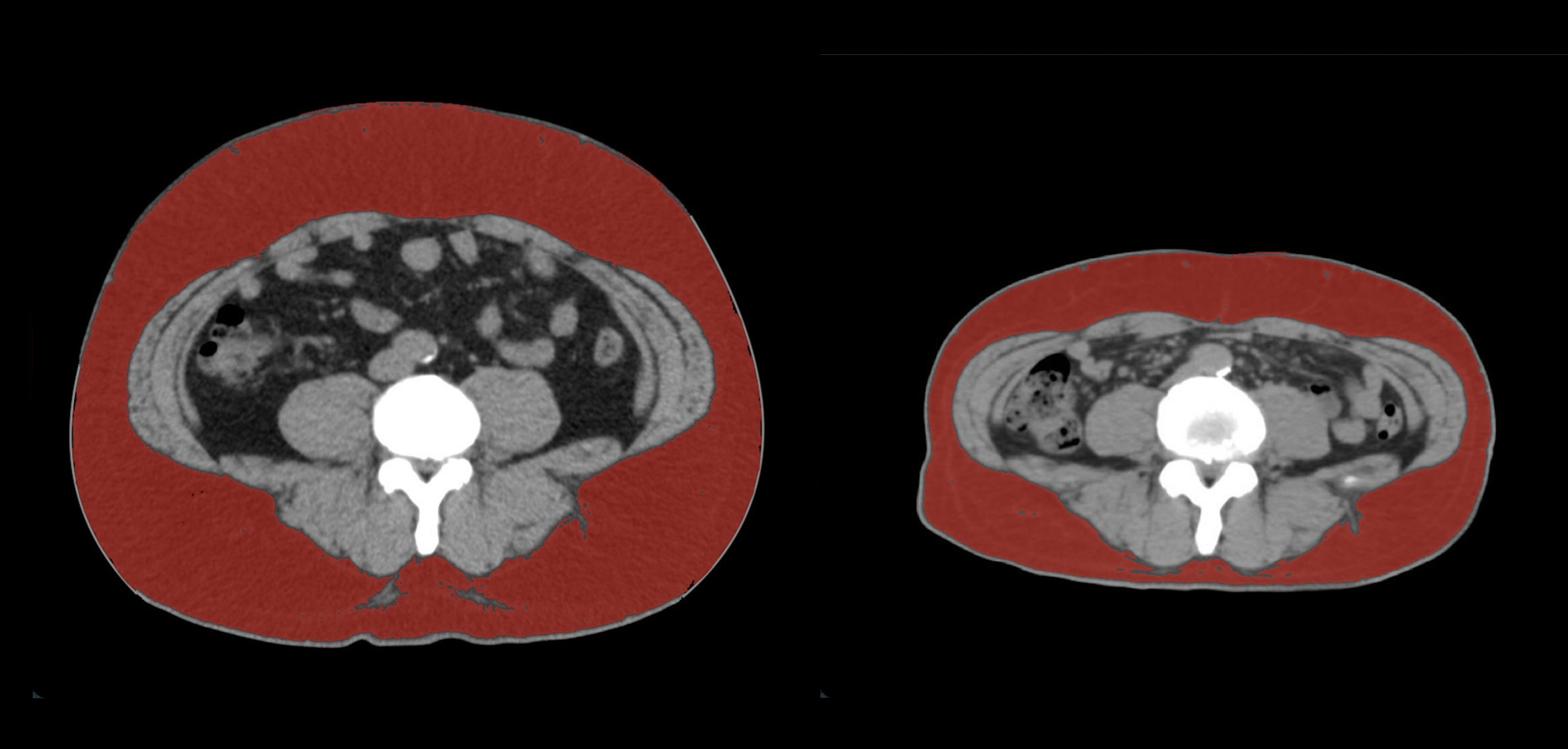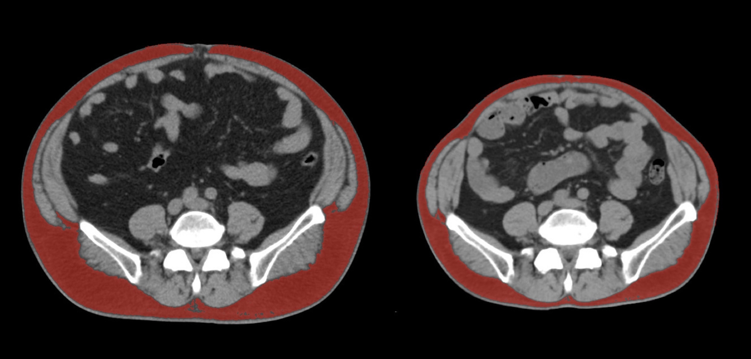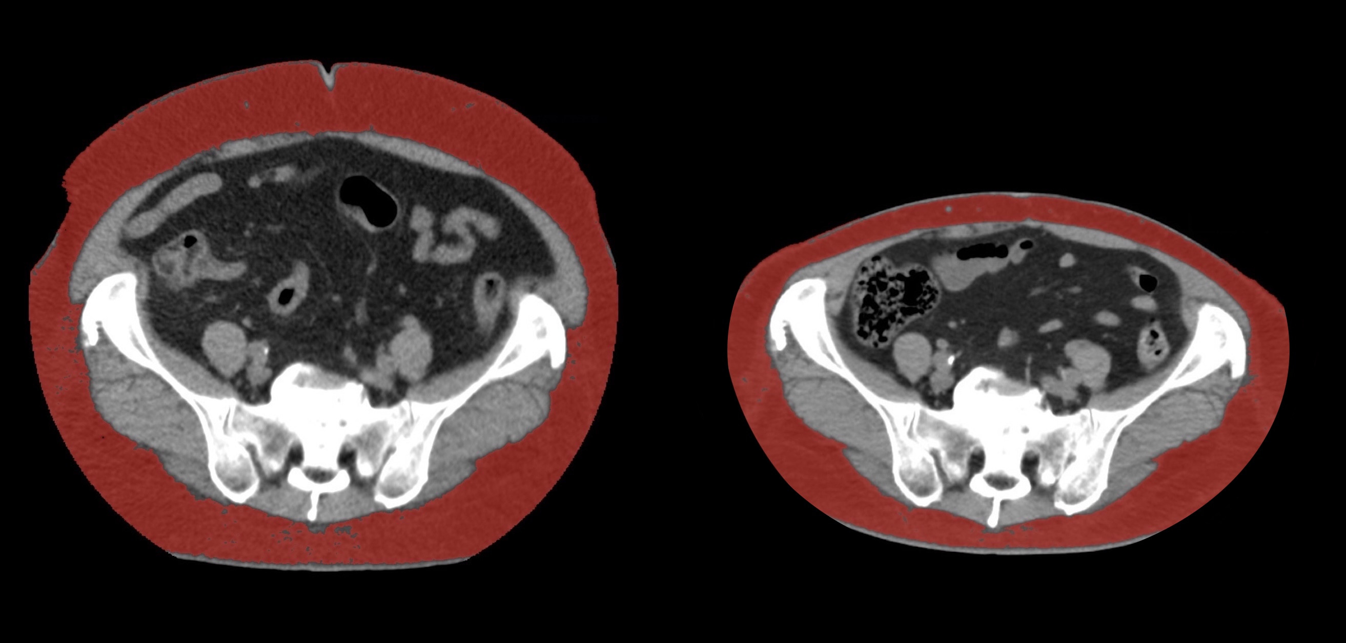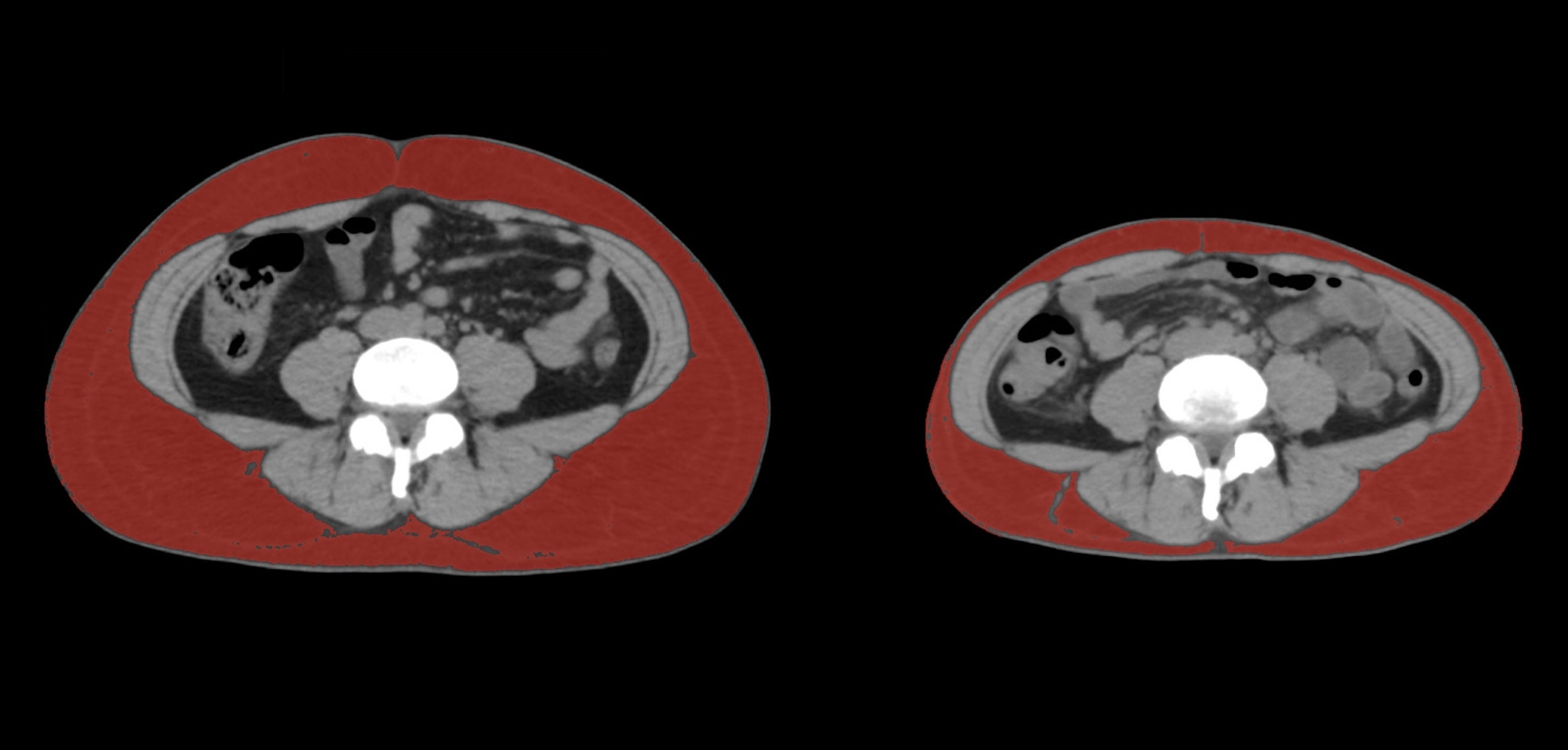 皮下脂肪の減少(赤色部分)